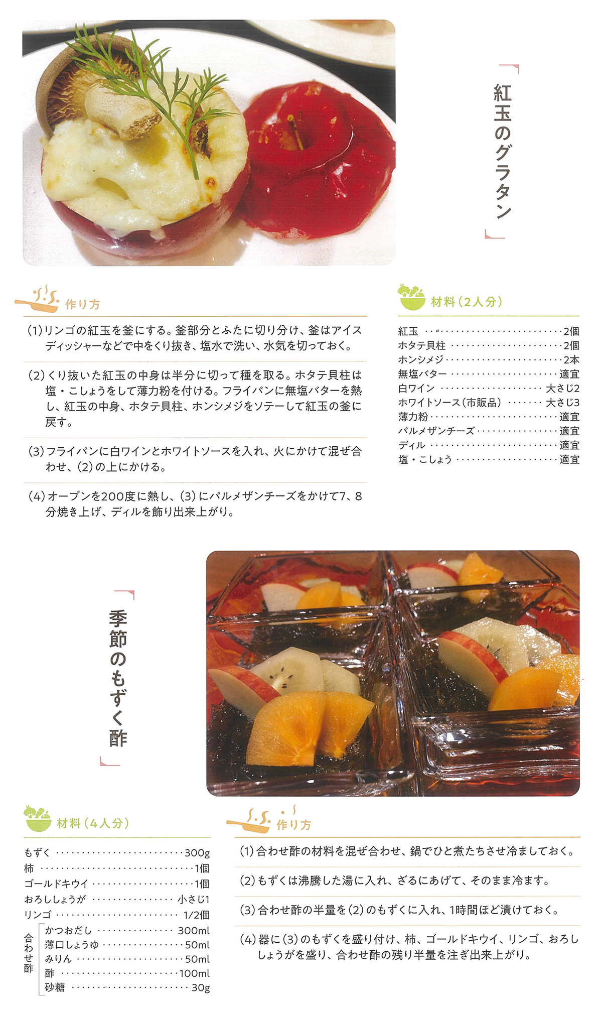 紅玉のグラタンと季節のもずく酢