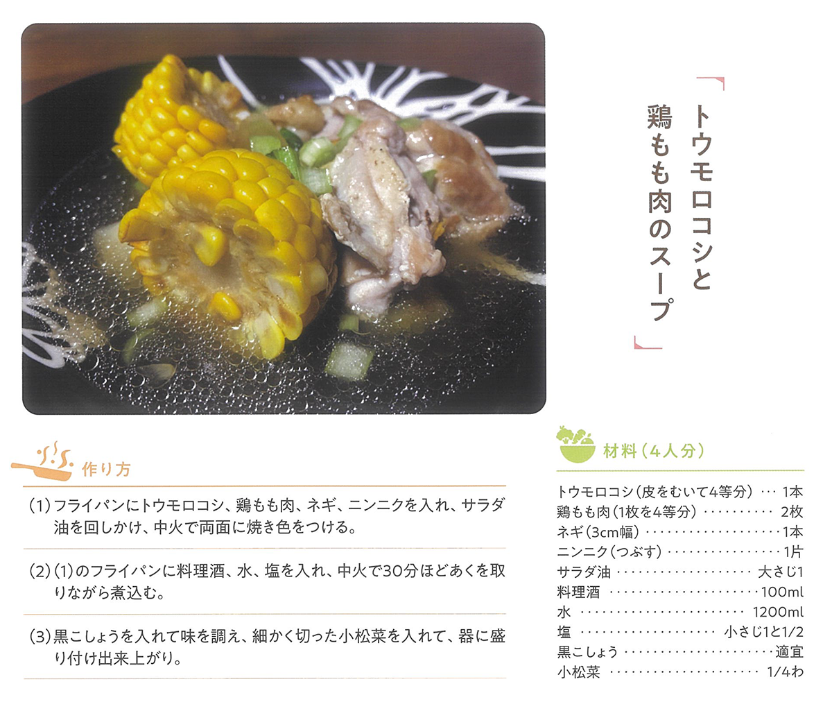 トウモロコシと鶏もも肉のスープ