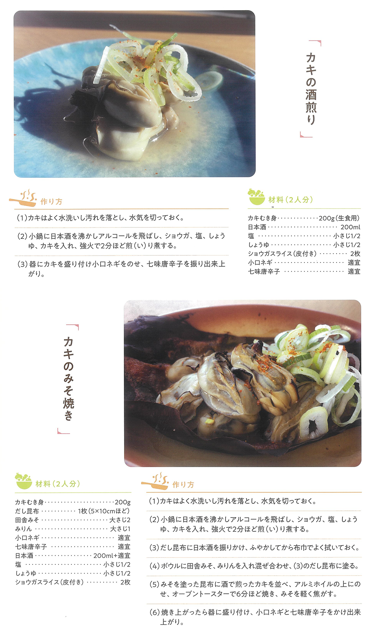 カキの酒煎りとカキのみそ焼き