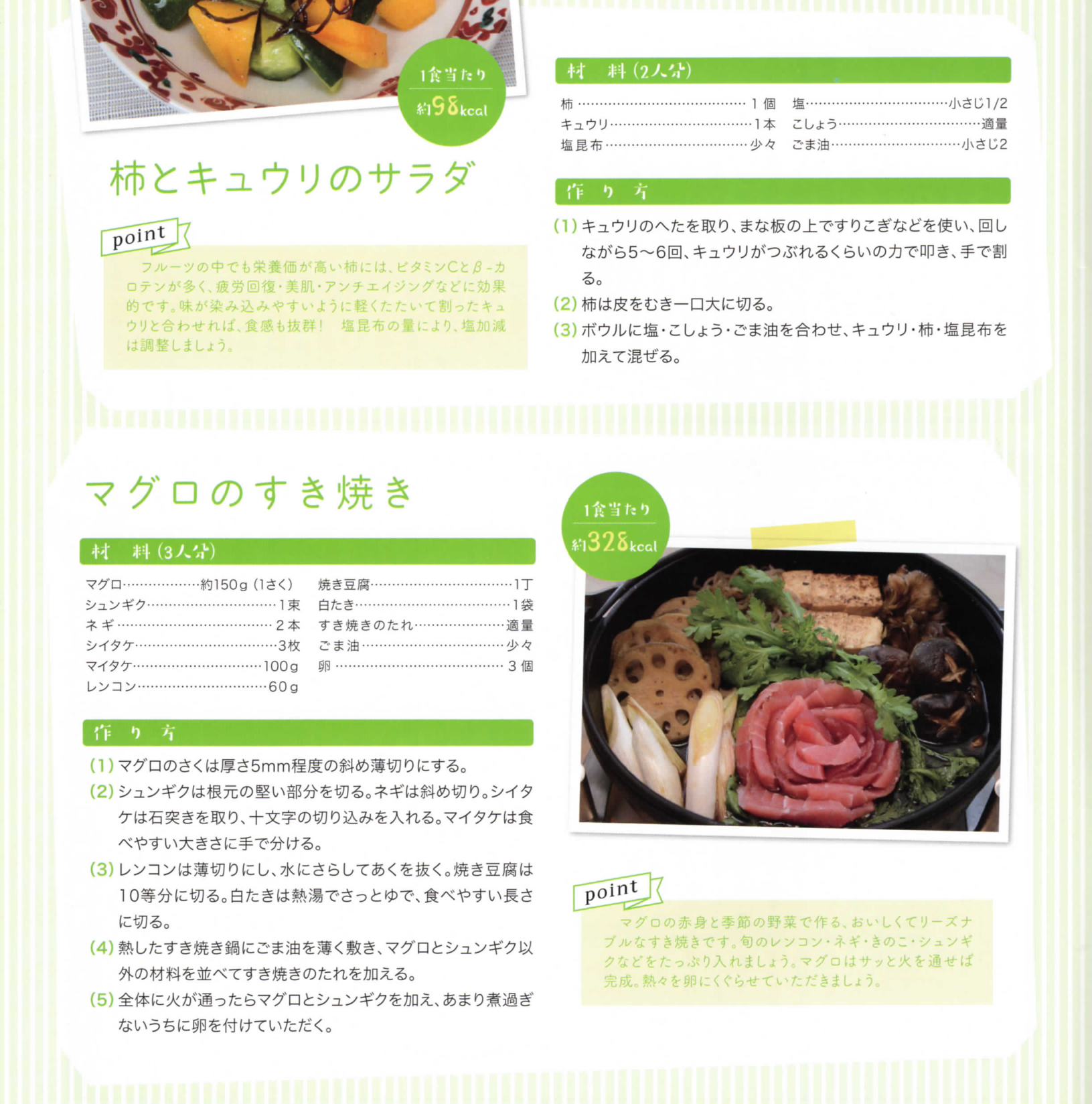 柿とキュウリのサラダとマグロのすき焼き
