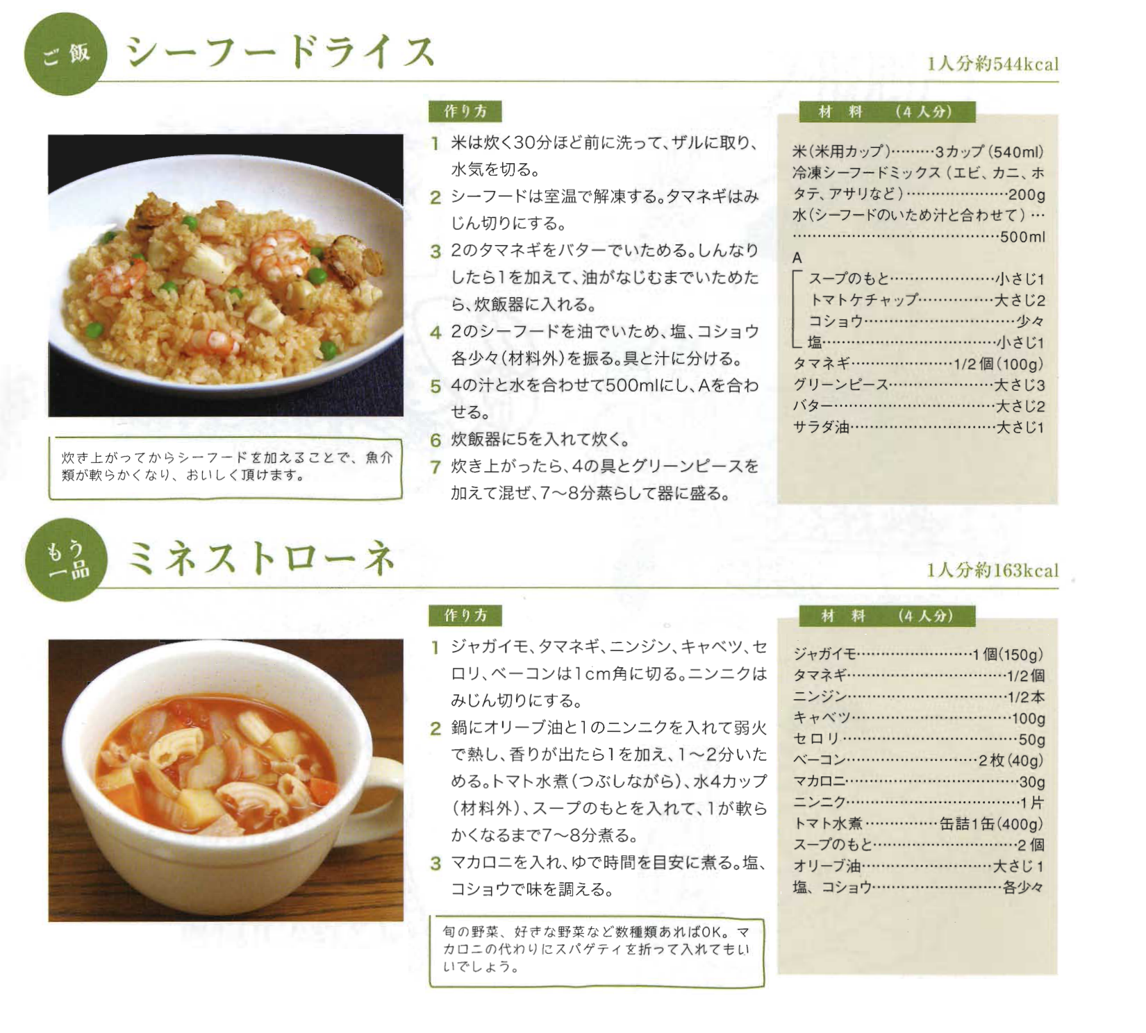 シーフードライスとミネストローネ
