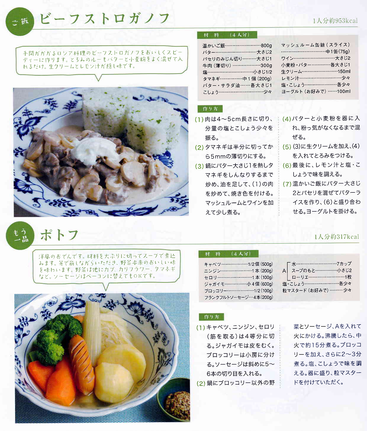 ビーフストロガノフとポトフ