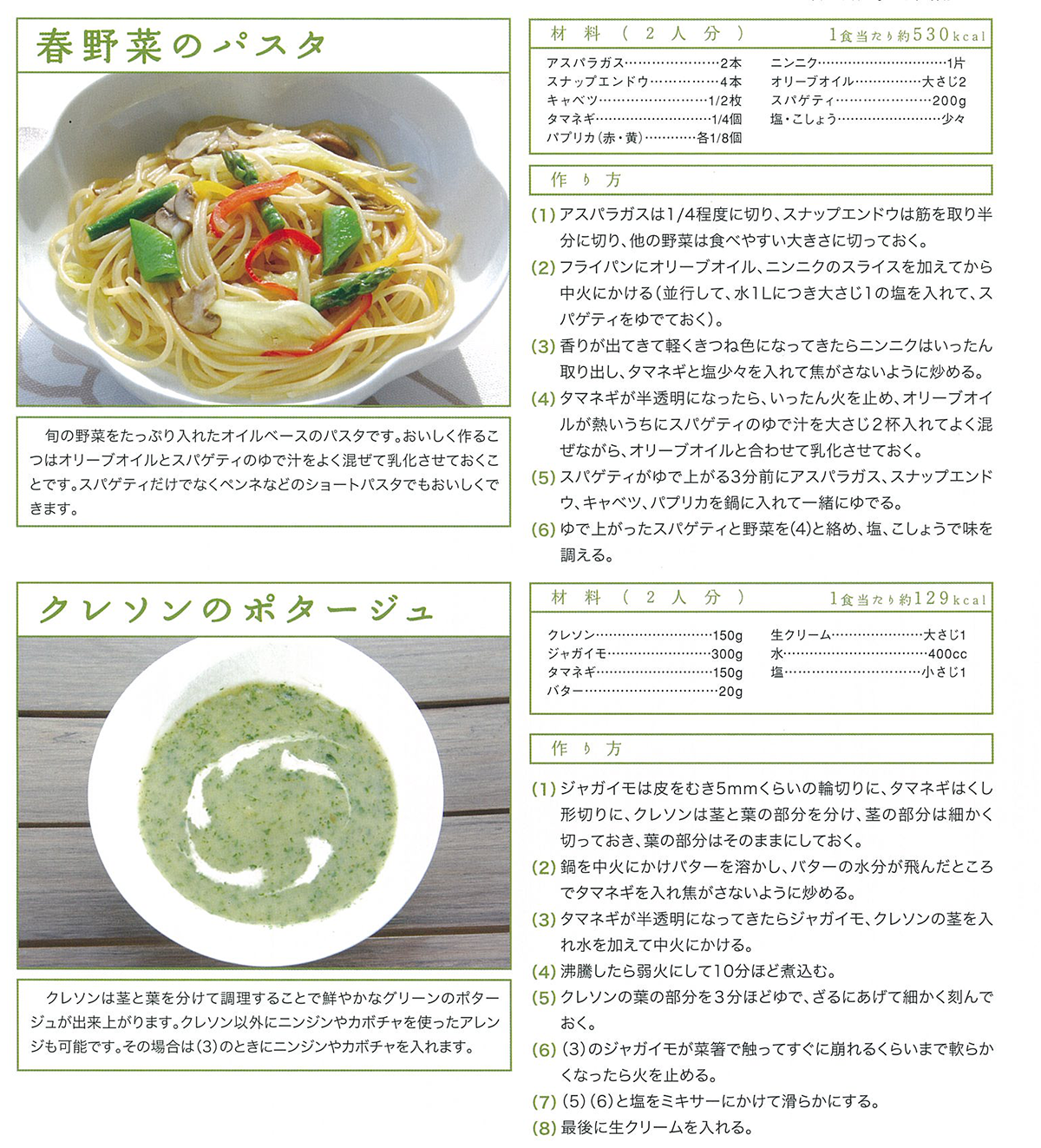 春野菜のパスタとクレソンのポタージュ