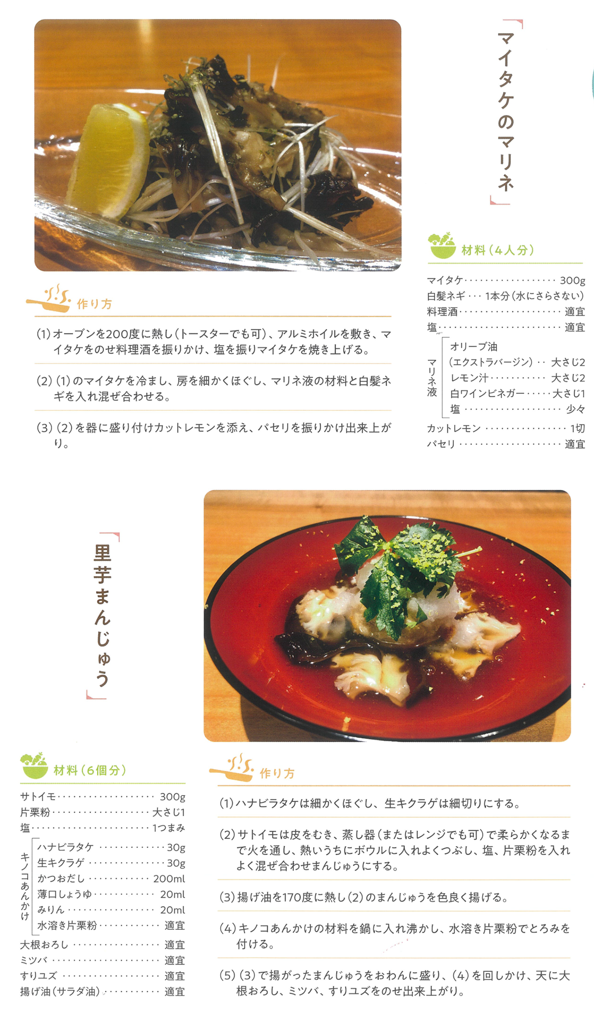 レンコン餅、栗ときのこのあん掛けと若鶏とマイタケのカレーフリット