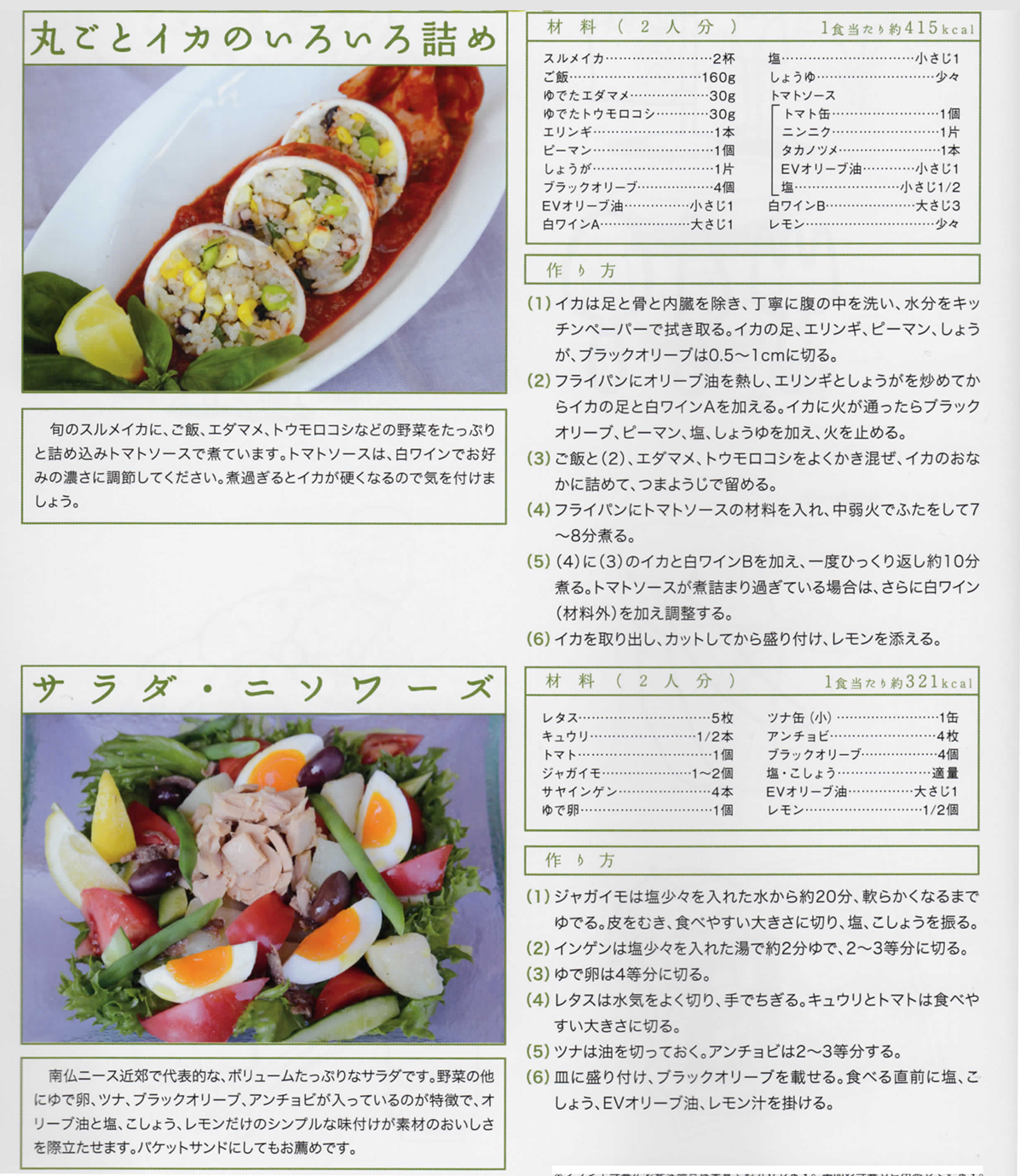 丸ごとイカのいろいろ詰めとサラダ・ニソワーズ