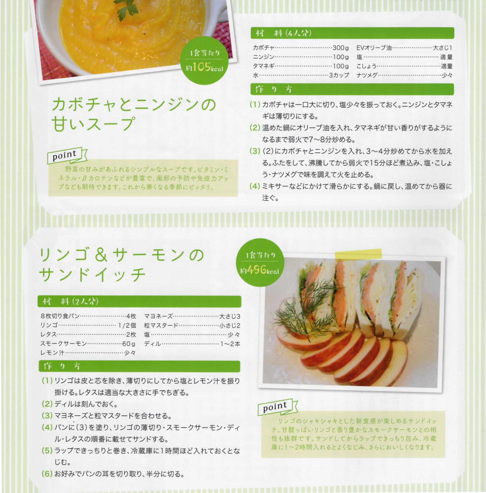 カボチャとニンジンの甘いスープとリンゴ&サーモンのサンドイッチ