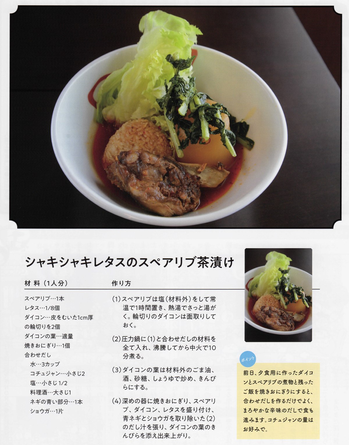 シャキシャキレタスのスペアリブ茶漬け