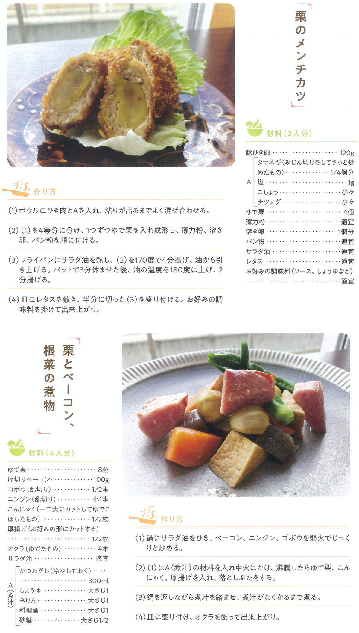 栗のメンチカツと栗とベーコン、根菜の煮物