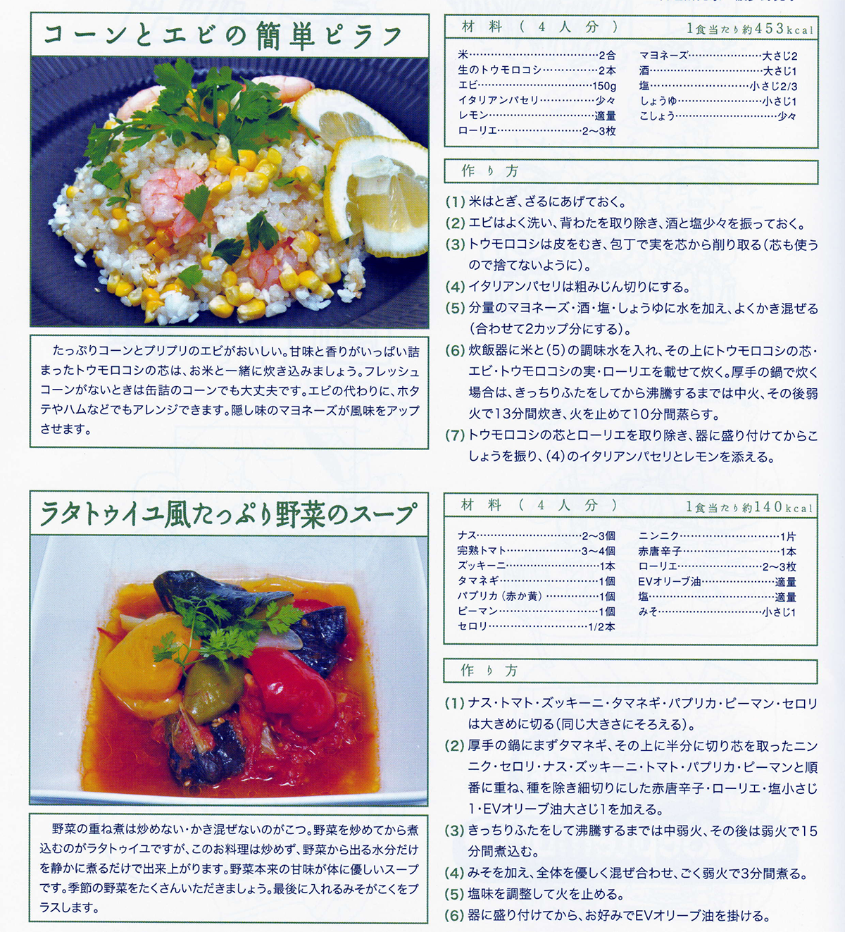 コーンとえびの簡単ピラフとラタトゥイユ風たっぷり野菜のスープ