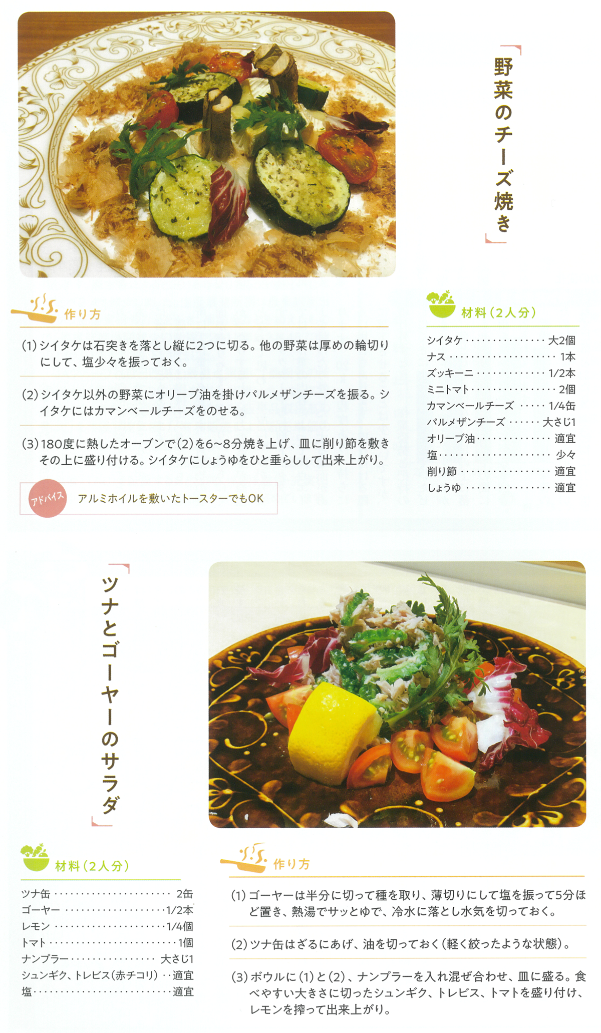 野菜のチーズ焼きとツナとゴーヤのサラダ