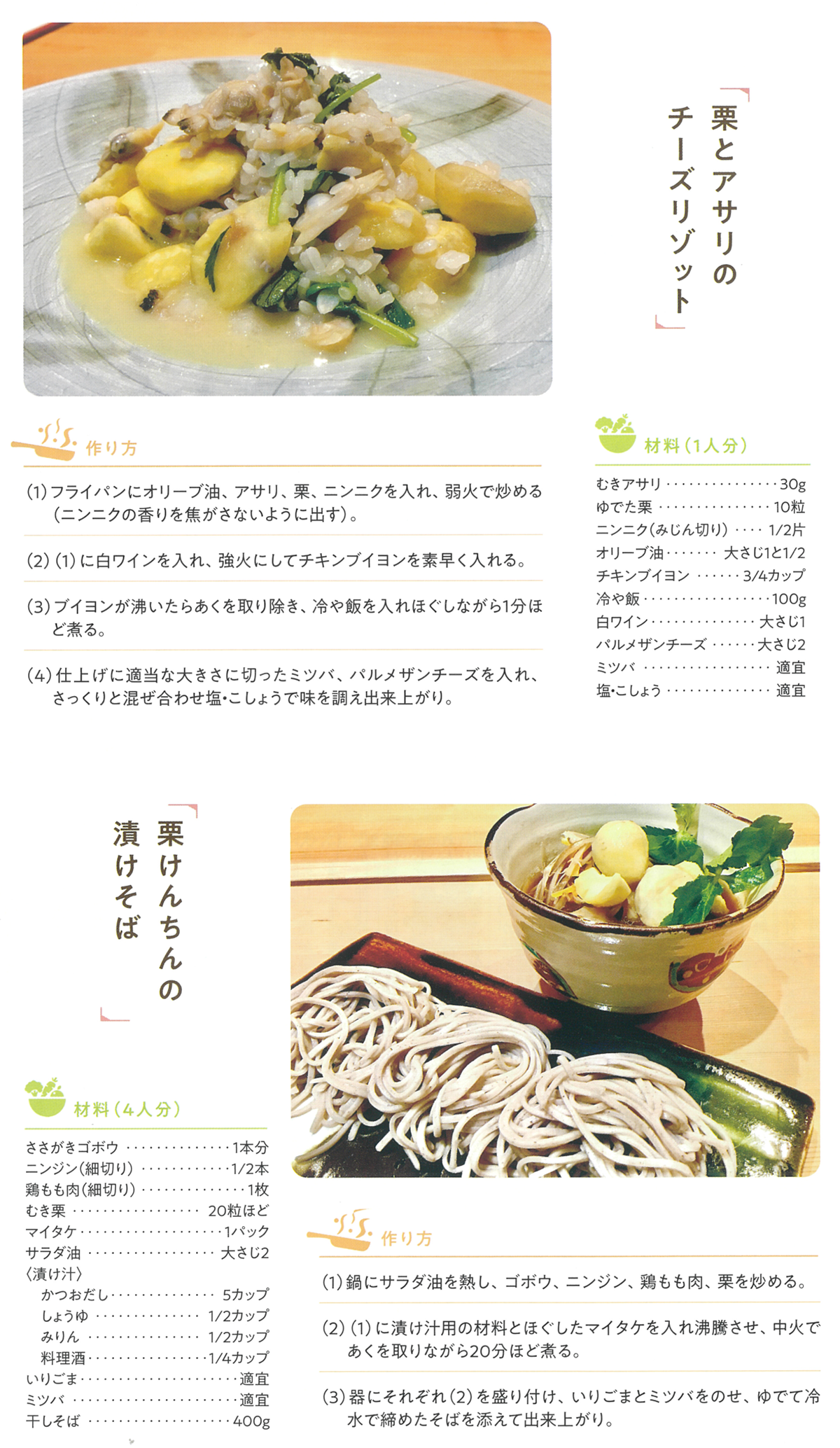 栗とアサリのチーズリゾットと栗けんちんの漬けそば
