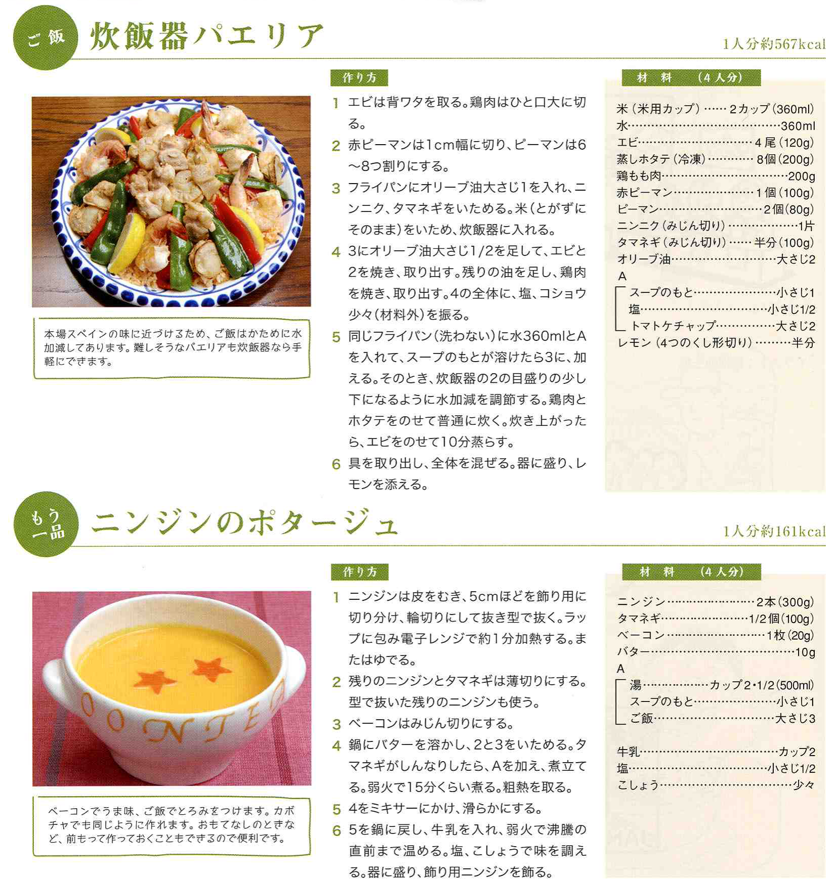 炊飯器パエリアとニンジンのポタージュ